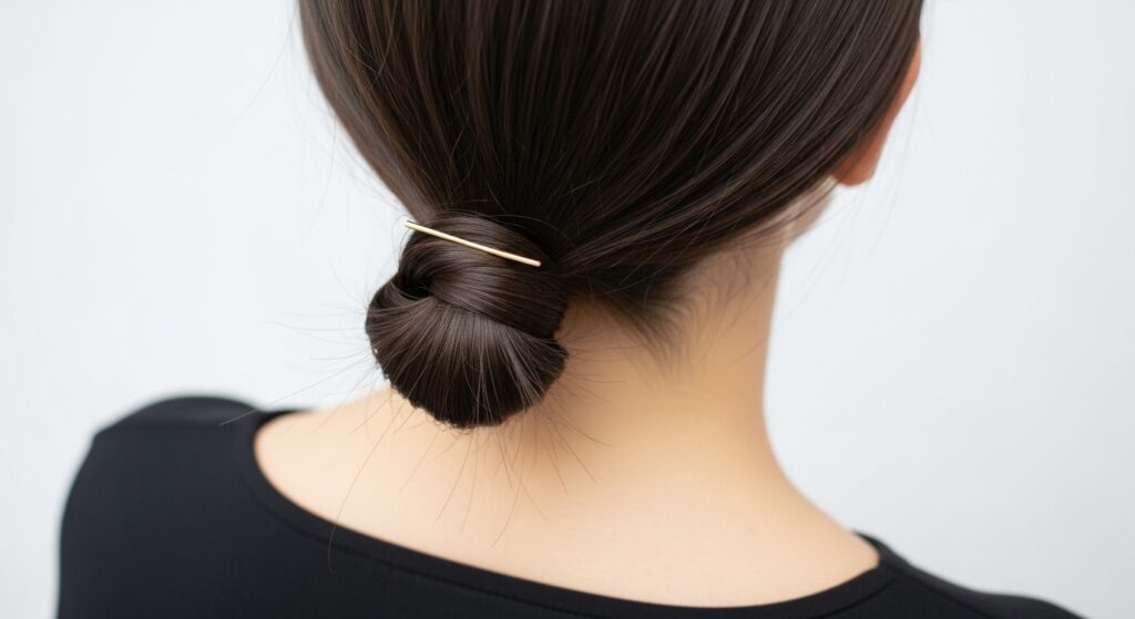 2. The Double-Knot Chignon: Part your hair down the middle. On each side, create a loose, low knot at the nape of your neck, securing each with a bobby pin. Then, twist the two knotted sections together and pin them into a low, elegant chignon. This style creates a beautiful, symmetrical look from behind.