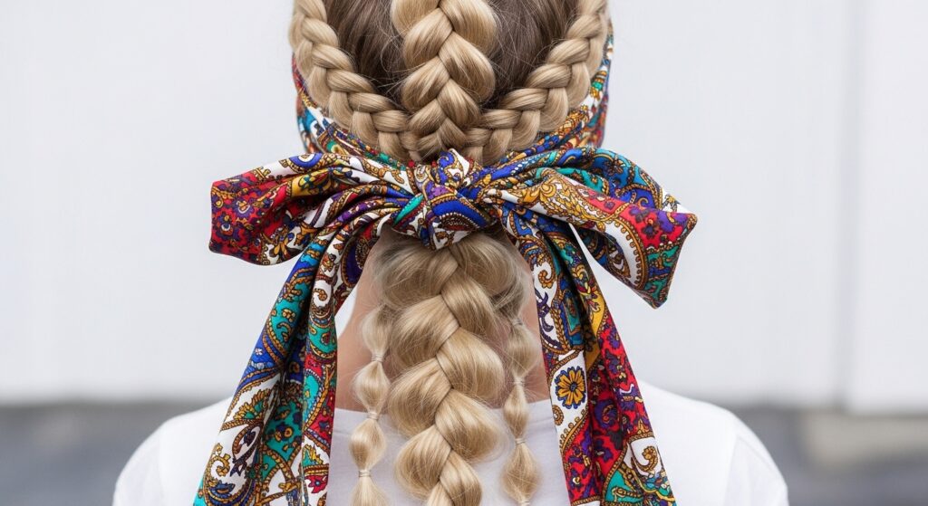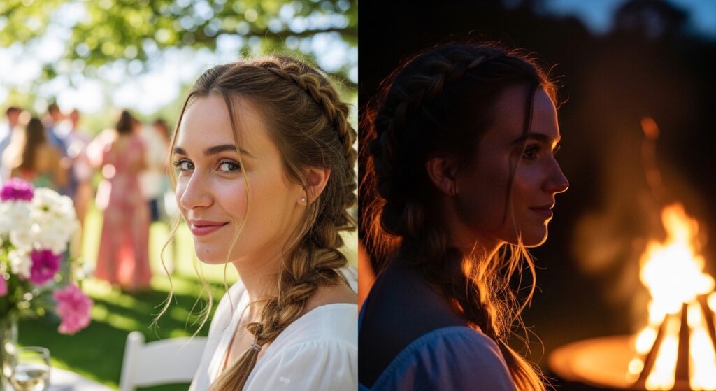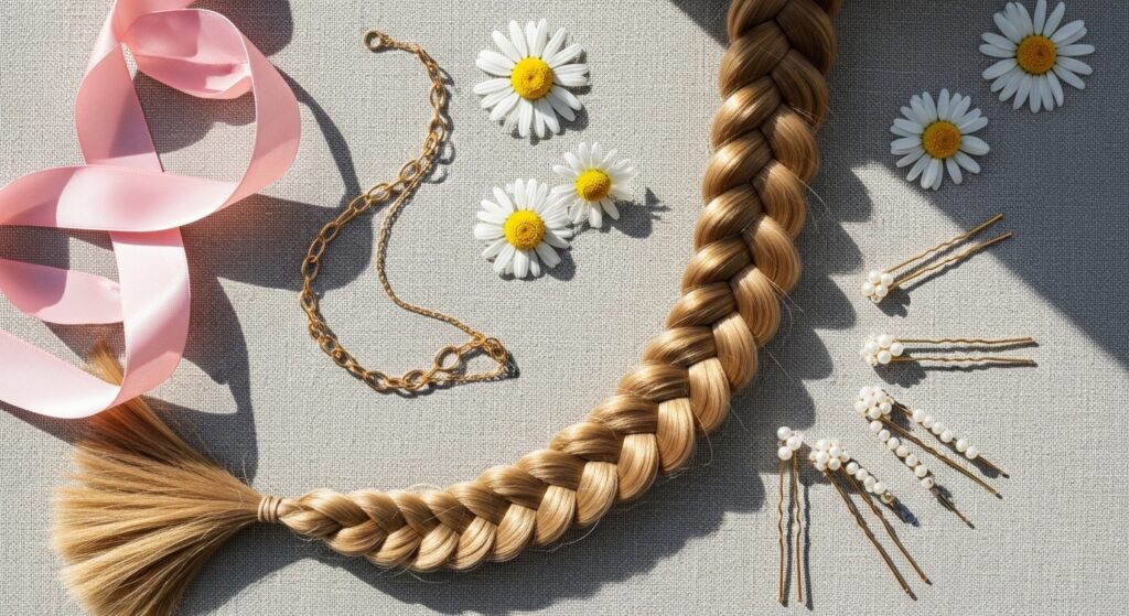 Summer is the season for bold accessories. Weave a colorful silk scarf into your braids before wrapping them around your head. Alternatively, lay a delicate hair chain along the part where the two braids meet over your crown. Fresh flowers, pearl pins, or even statement barrettes can transform your milkmaid braids from simple to spectacular in seconds.