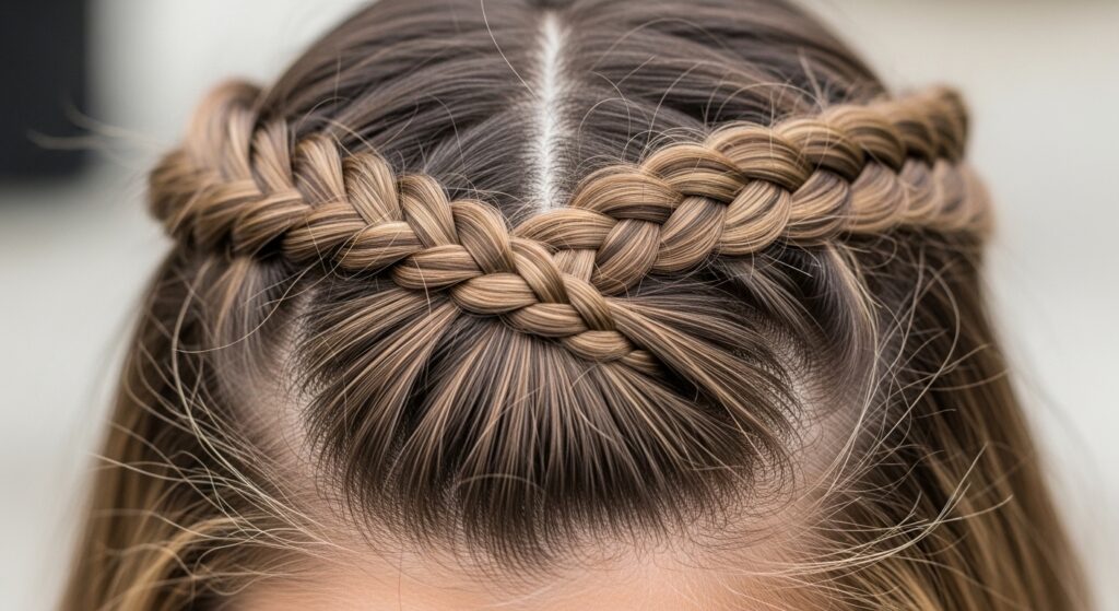 1. The Triple Braid Crown: Use three thinner braids instead of two for a more intricate, woven look.
