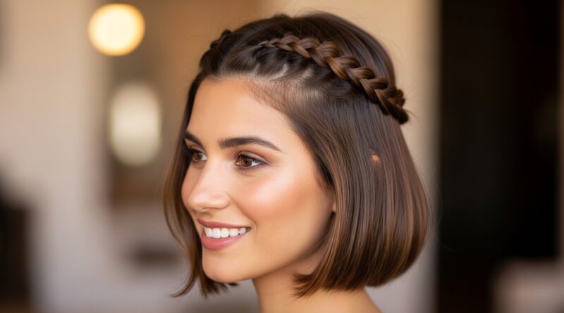 Think you need long hair for this style? Think again! Those with chin-length bobs or lobs can achieve a milkmaid look using braided hairpieces, extensions, or by focusing on the front sections. Create two small braids from the front, pin them back over the crown, and let the back and ends of your short hair create a chic, textured contrast. It’s a creative and adorable way to beat short-hair summer woes.