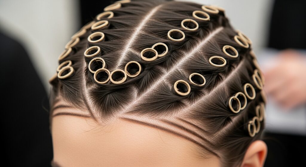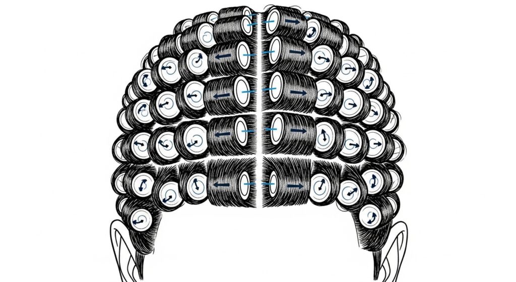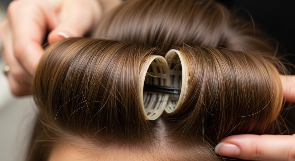 Use magnetic rollers for the large, internal sections of hair to speed up drying and create broad volume, then use pin curls at the hairline, nape, and crown for precise control and detailing. This hybrid method combines the best of both worlds.