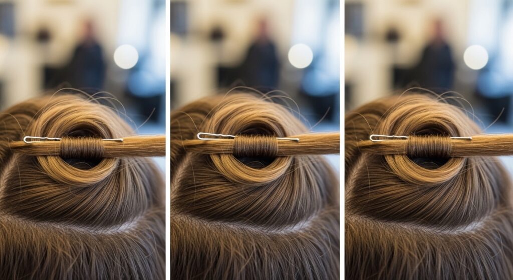 Instead of lying flat, the stand-up curl is coiled in the air before being pinned to the scalp. This technique gives more lift and volume at the roots, perfect for adding height to the crown or creating a looser, more voluminous wave pattern.
