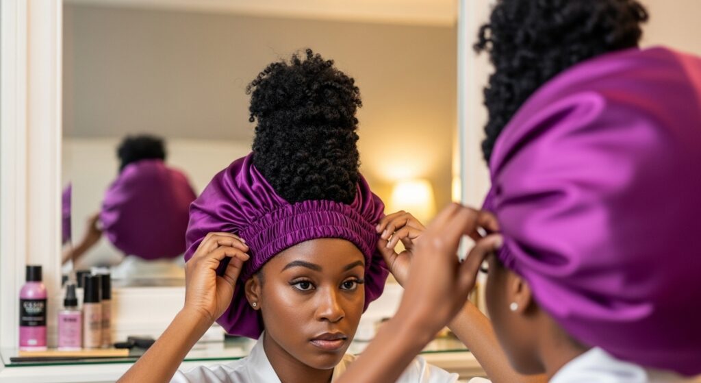Double up on protection! Create your preferred pineapple, then cover it with a silk or satin bonnet. This gives you the root lift and shape preservation of the pineapple, plus the friction-free environment of the bonnet. It’s the ultimate defense for high-porosity or easily frizzed curls.
