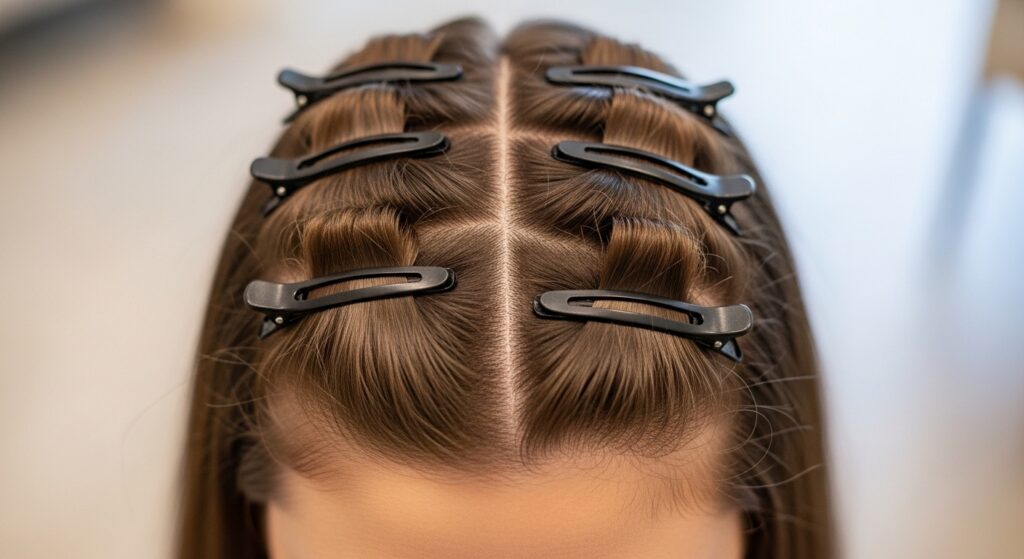This is a sectioned approach. Divide your dry hair into 4-6 large sections. Twist each section loosely and clip it to the top of your head with a small jaw clip, creating a Medusa-like effect. This offers incredible definition preservation with zero tension lines.