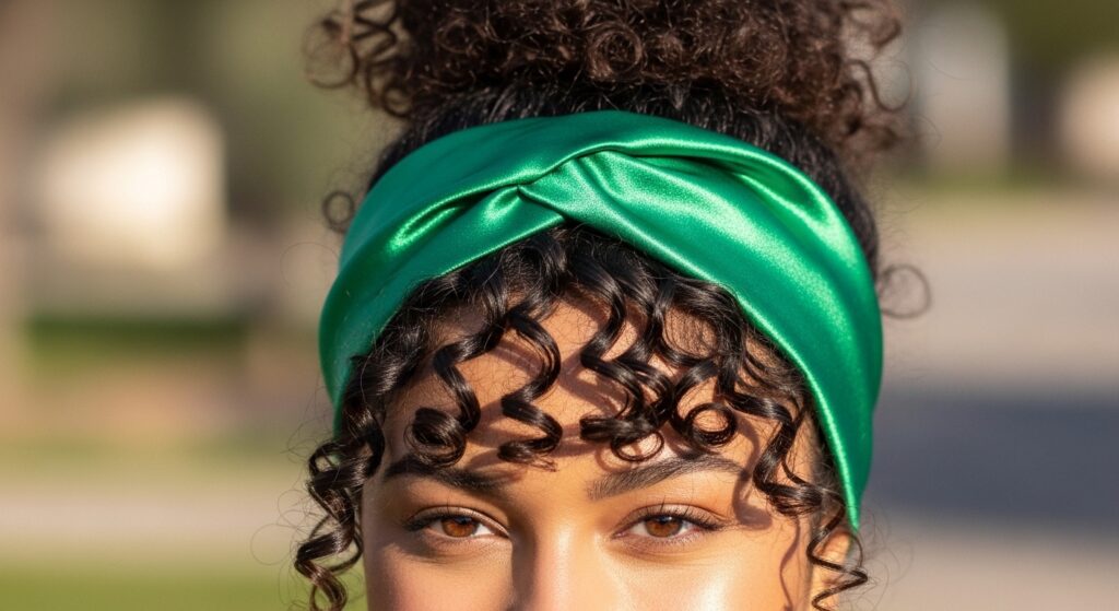 To protect your front curls or bangs specifically, use a wide satin or silk headband to sweep them back after you’ve created your pineapple. This keeps them flat and smooth, integrating them into the protected style without additional tension.