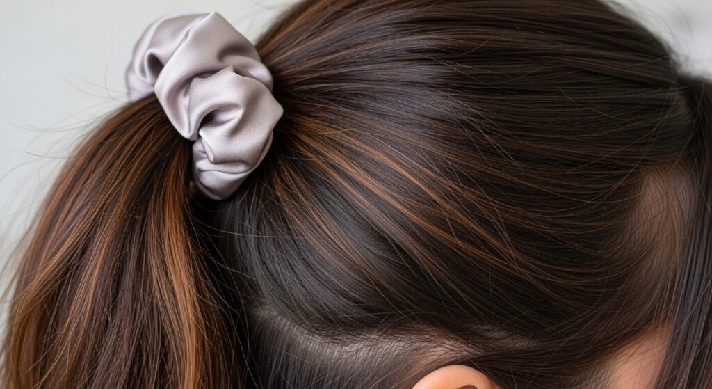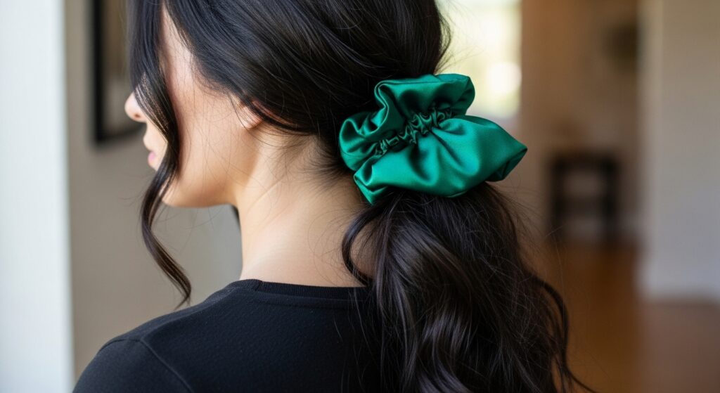 Instead of letting your ponytail flow free, gently twist it into a loose, coiled bun on top of your head and secure the ends with a second soft tie or pin. This is fantastic for extra-long hair that might otherwise fall and get slept on. Ensure the bun is not tight to avoid creasing.
