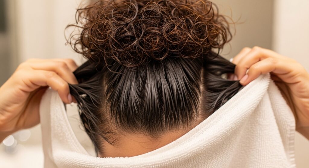 Never sleep with sopping wet hair, but if your hair is damp from a late-night wash, use a microfiber hair towel or a silk scarf to plop your hair for 20 minutes first. Then, create a very loose, high pineapple with a satin scrunchie. The slight elevation helps with drying and prevents matting.
