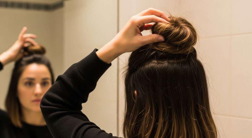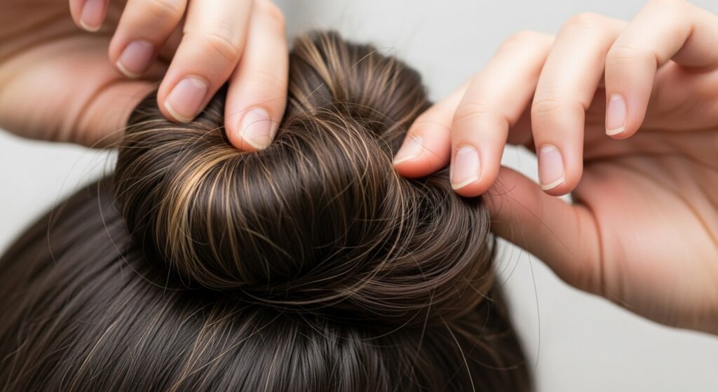 A flat crown can make even the most voluminous bun look deflated. Before gathering your hair, create some lift at the roots. Gently backcomb the hair at the crown with a comb, or simply flip your head over, tease the roots with your fingers, and spray with a light-hold texturizing spray before gathering it into your bun. This base volume gives your style a lift that feels modern and glamorous.