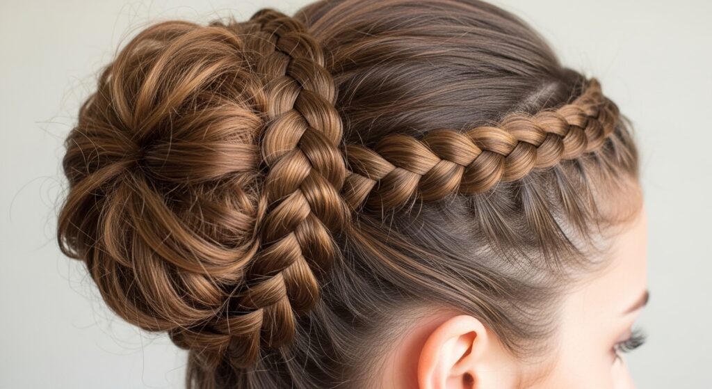 You don’t need to braid your entire head of hair. Instead, incorporate a small, subtle braid as an accent. Try a braided crown that wraps into the bun, or simply braid the section of hair around your face before combining it with the rest for the bun. A Dutch braid or a simple three-strand plait adds a beautiful textural contrast to your free-formed curls and makes the style look meticulously crafted.
