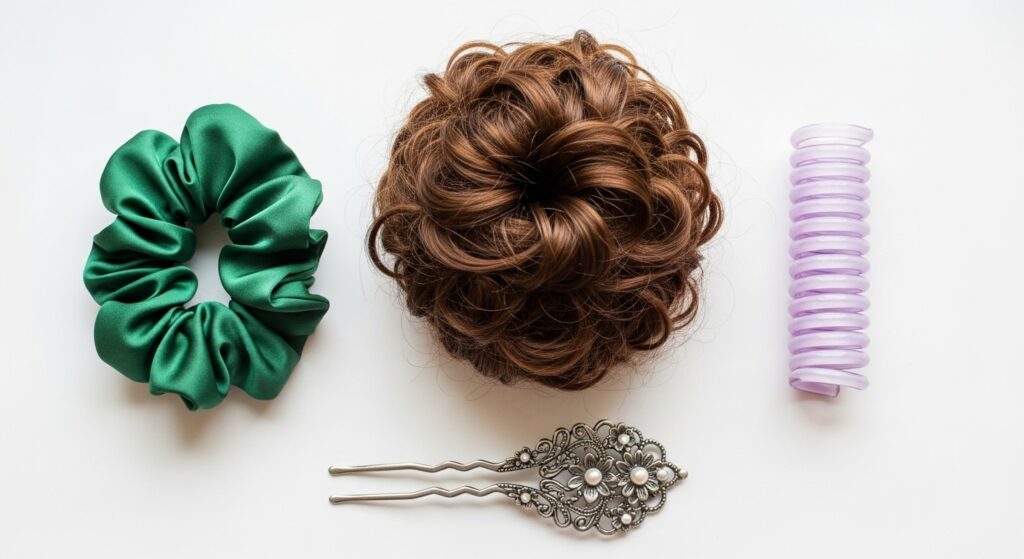 The tool you use to secure your bun matters more than you think. Ditch the standard elastic once in a while. A large, spiral hair tie is fantastic for reducing creases and maintaining curl definition. A velvet scrunchie adds a pop of color and texture while being gentle on your hair. For a truly invisible hold, use bobby pins or a hair fork to secure a twist instead of a tie. Each tool gives a different base shape and finish.