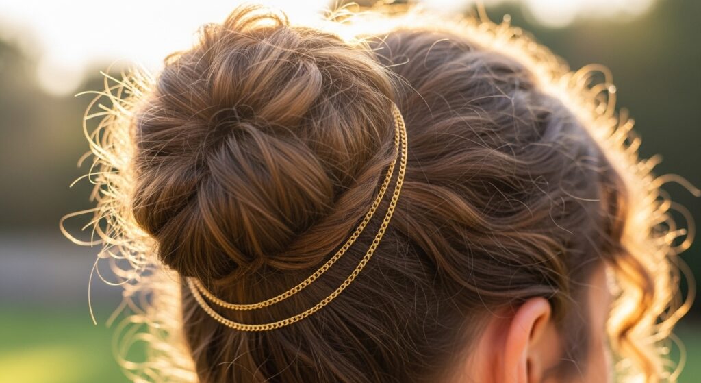 Accessories are the fastest way to signal a new look. We’re not just talking about a basic hair elastic. Think bigger. Wrap a delicate chain around your bun. Slide in a statement hair clip or a few decorative pins at the base. Tie a silk scarf around the bun or use it to tie the bun itself. A single, stunning accessory can become the focal point and make your entire style feel brand new.