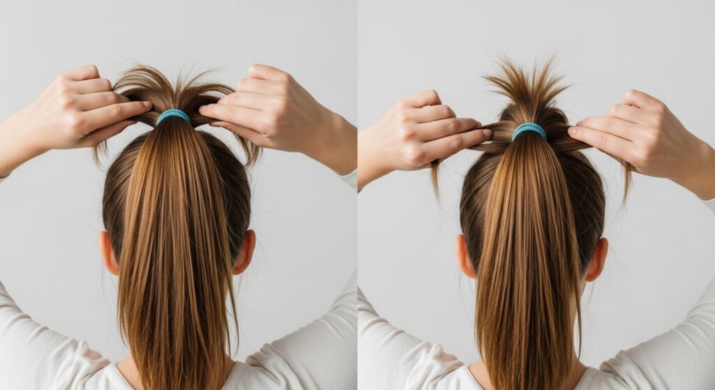 This technique creates a bun with incredible volume and a fascinating, woven texture. You make a ponytail but don’t pull the hair all the way through the final loop of the hair tie, creating a loop. Then, you split the loop in half and pull the remaining tail of hair through the center. Fluff it out, and you have an instant, voluminous bun with no pins needed. It’s a different construction method that yields a uniquely full result.