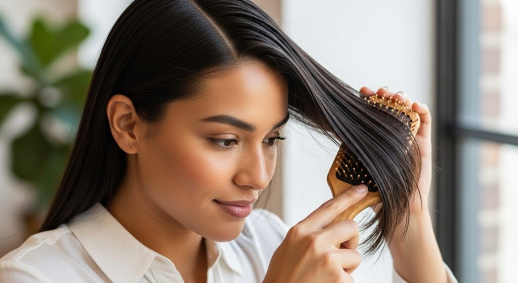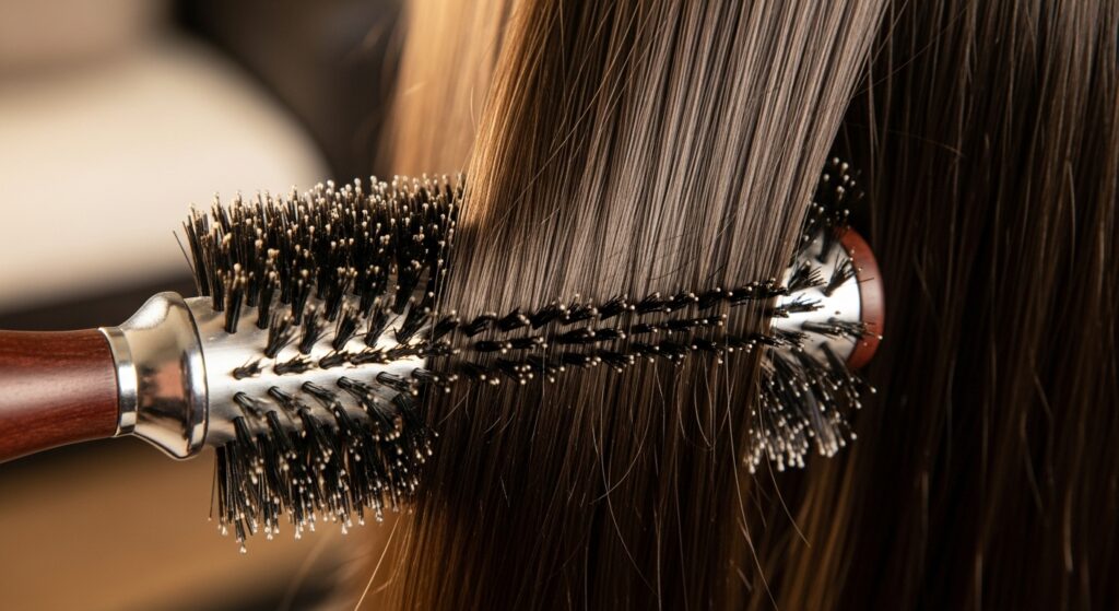Swap out your plastic paddle brush for a high-quality boar bristle brush. Natural boar bristles are excellent at distributing your scalp’s natural oils from the root to the tip, naturally conditioning your hair and enhancing its shine. They also create less static and breakage than synthetic brushes, ensuring your sleek style is smooth and frizz-free, not just flat.