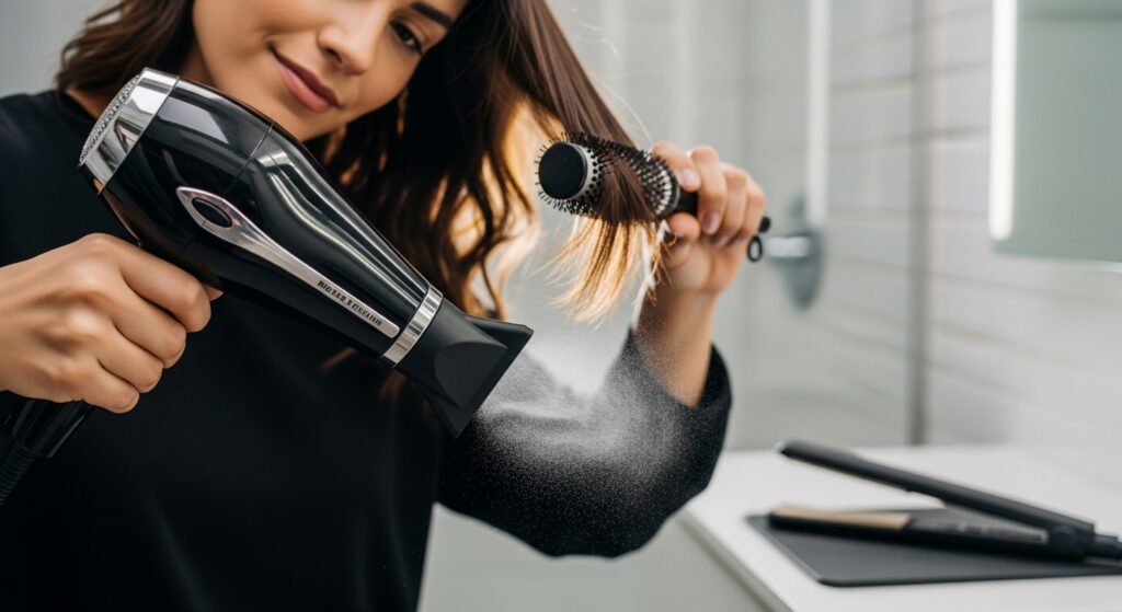 If you must use heat, ensure your hair is 100% dry before the flat iron touches it. Using a flat iron on even slightly damp hair causes something called “bubble hair,” where steam forms inside the strand, creating weak points and breakage. A perfectly sleek style is a healthy one, so take the extra time to blow-dry thoroughly for a smoother, shinier, and safer result.