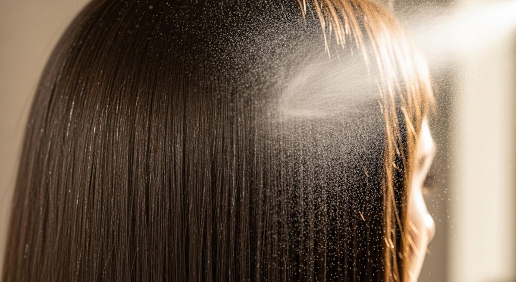 Stop spraying hairspray directly onto your hair. Instead, hold the can about 12 inches away and mist it into the air above your head. Then, walk through the fine mist. This deposits a lightweight, even layer of hold all over without creating crunchy, sticky spots or dulling the shine. It’s the secret to hold that you can’t see or feel.