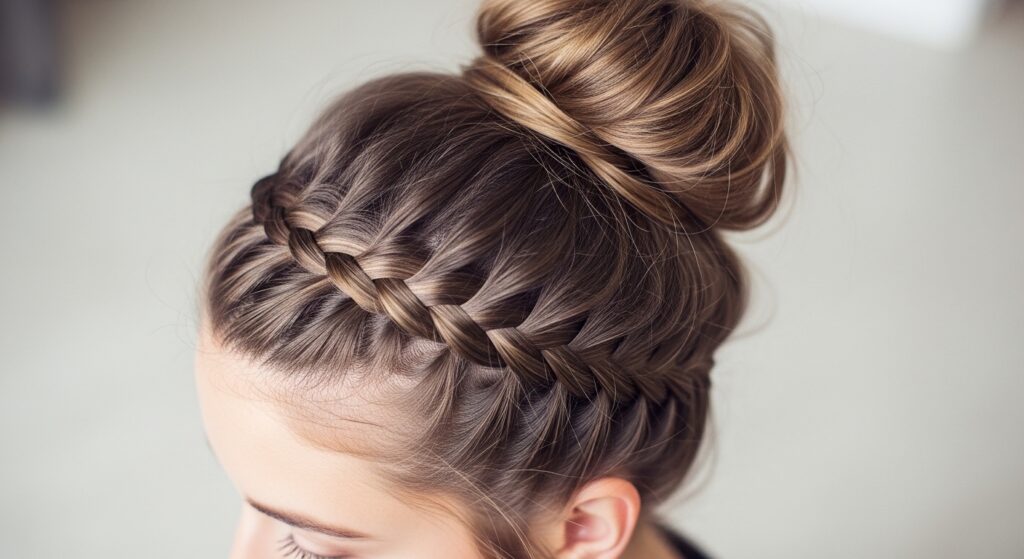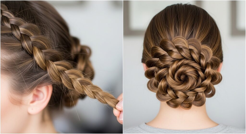 Instead of a full braided crown, use a braid as a volume-enhancing base. Create a loose Dutch braid (an inside-out French braid) along your hairline from one side to the other, stopping at the opposite ear. Secure it. Then, gather all your hair, including the braid, into an updo of your choice—a bun, twist, or chignon. The braid adds a gorgeous textural detail and a firm foundation that lifts hair away from the scalp.