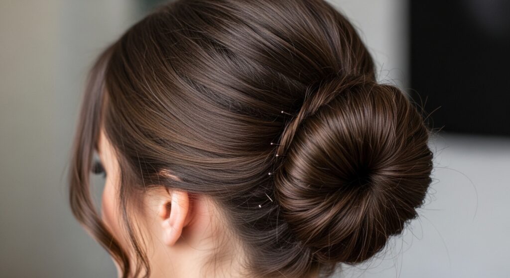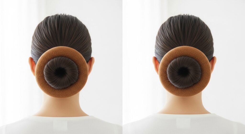 A classic volume hack for fine hair. Use a small, mesh “donut” or sock bun helper. Pull hair into a low ponytail and through the donut. Spread hair evenly around the donut to cover it, then tuck the ends underneath and pin securely. The donut provides a perfect, round shape that makes your chignon look polished and incredibly thick.