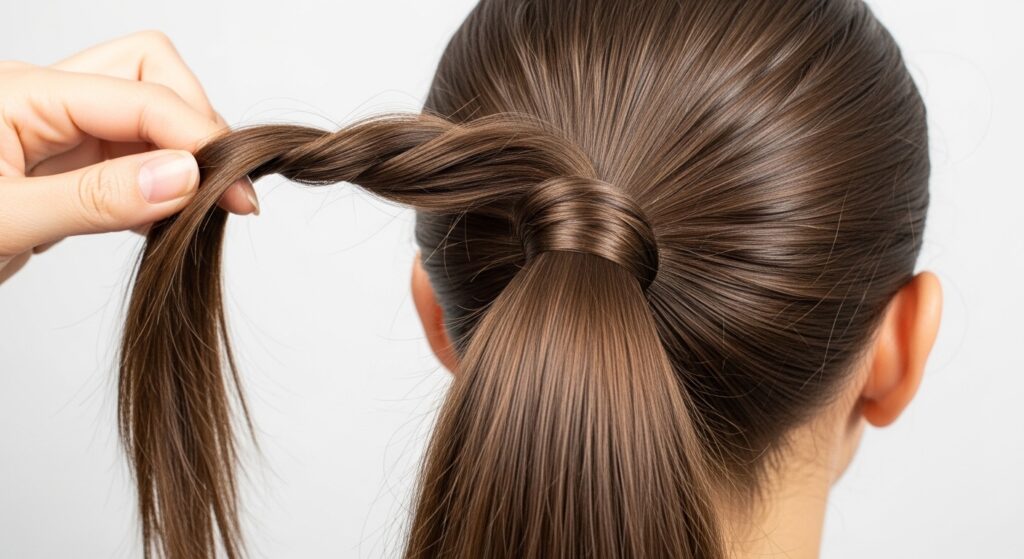 Playful and incredibly effective, the bubble ponytail turns a thin tail into a statement. Create a standard ponytail (high or mid-height). Space hair ties down the length of the tail every few inches. Gently tug and puff out the hair between each elastic to form “bubbles.” The elastics provide structure and prevent the volume from falling, making your hair look twice as thick.