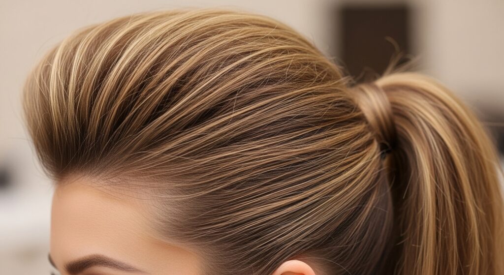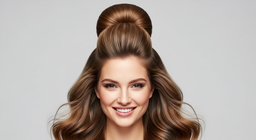 This is your basic ponytail’s sophisticated, fuller cousin. Create a high ponytail, but before securing it, gently backcomb (tease) the hair at the crown underneath the top layer. Smooth the top layer over the teased base, then gather and secure the ponytail. The hidden cushion of teased hair creates incredible height that looks sleek on the surface. For extra volume, wrap a small section of hair around the elastic to conceal it.