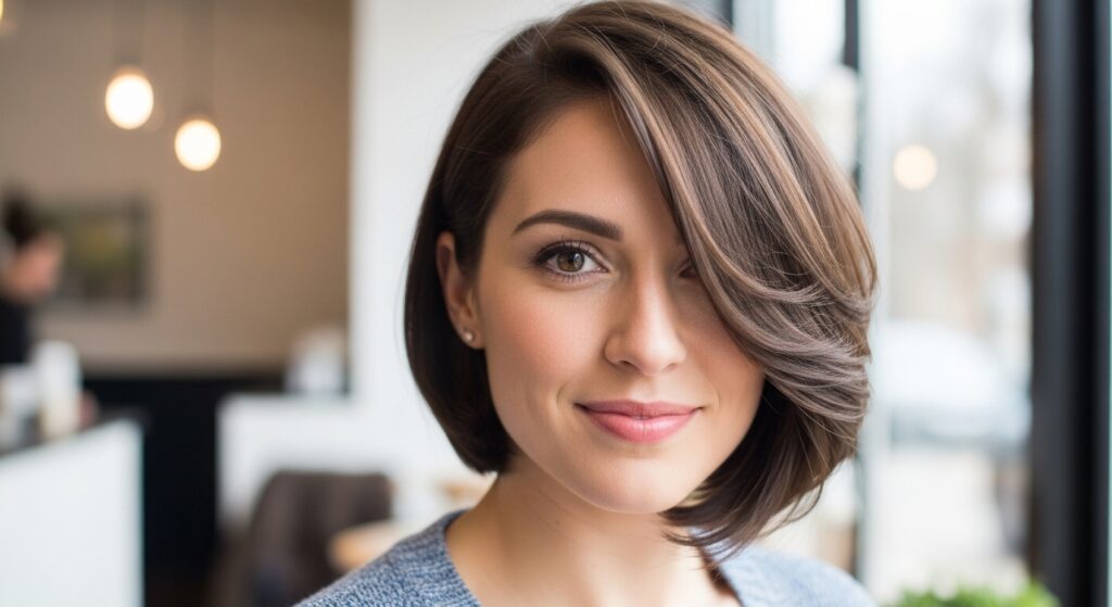 Tuck one side securely behind your ear. Let the other side fall naturally in that pristine, glossy sheet. It’s the ultimate quiet luxury bob—effortless and expensive-looking.