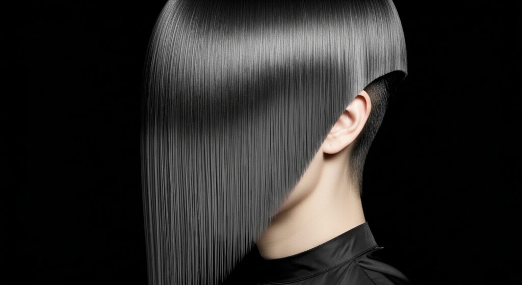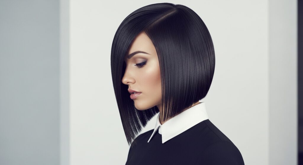 Use a flat iron to add a slight inward bend at the end. Keep the shorter side tucked or styled away from the face. The dramatic difference in length creates a bold, modern silhouette that’s all about the cascade.