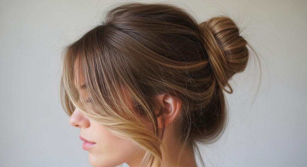 Then, simply sweep all your hair to the heavier side. Use a light-hold texture spray to keep it in place without stiffness. This creates an instant cascade of hair that feels polished and put-together.
