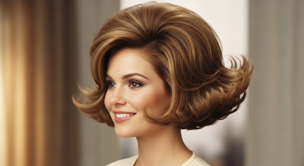 This creates body at the root and a flipped cascade at the end. It’s retro, fun, and gives the illusion of more hair.