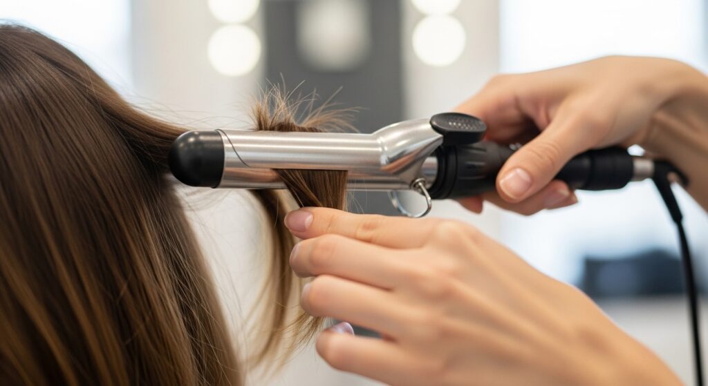 For waves that waterfall, direction is key. Always curl your front sections away from your face. Take small, vertical sections of hair. Wrap them around the iron, hold for 10 seconds, and release.