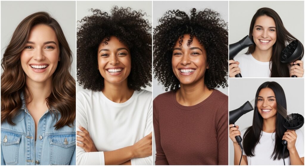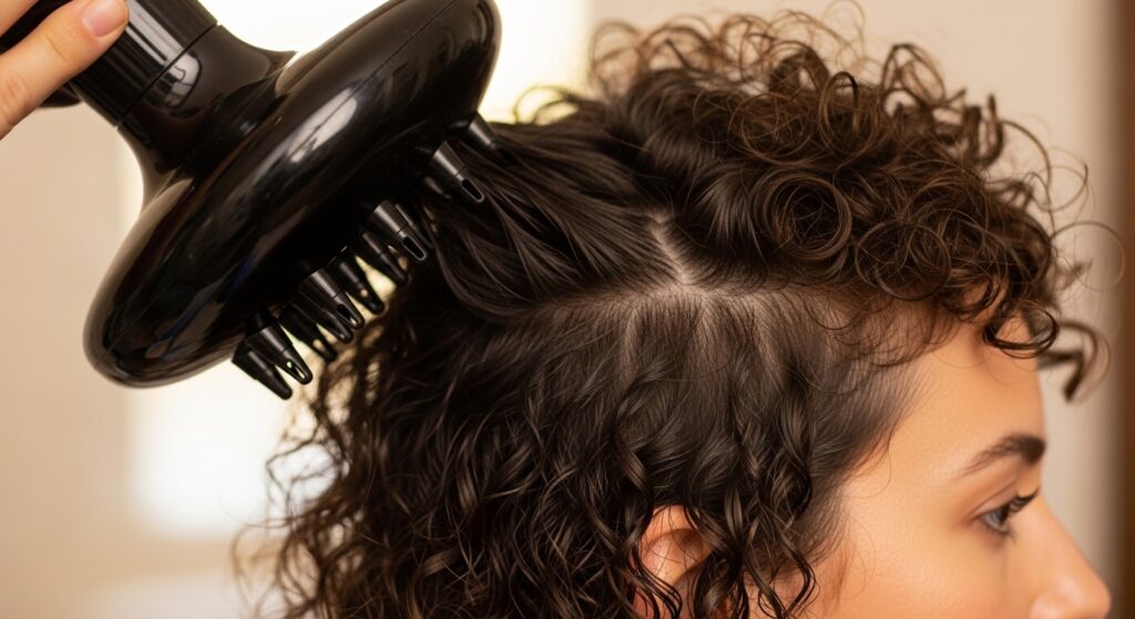 A diffuser is non-negotiable for curly hair. It disperses airflow over a wider area, drying curls gently without blowing them apart.