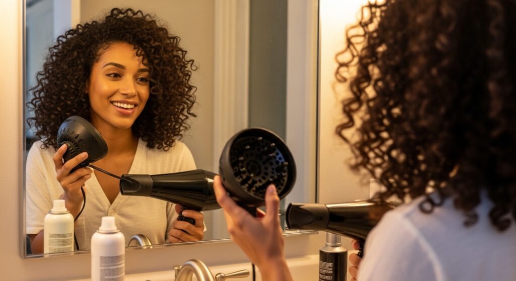Technique 4: The Diffuser is Non-Negotiable. This is the curly girl’s best friend. A diffuser spreads the airflow over a wide area, drying curls gently without blasting them apart. It cups your curls, allowing them to dry in their natural pattern with less disruption.