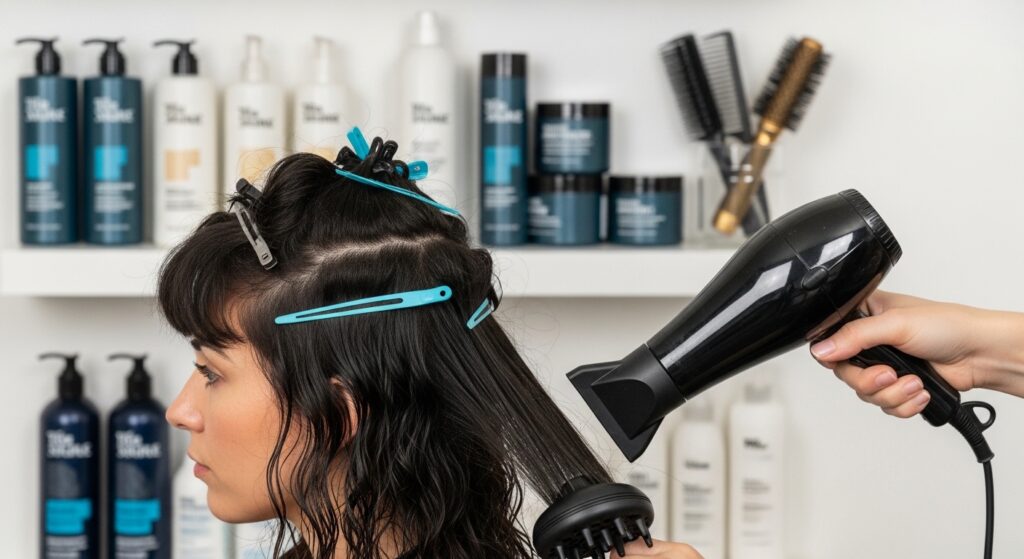 Technique 10: Section Like a Stylist. Don’t dry your hair as one mass. Clip up the top layers and work from the nape of the neck up. Smaller, manageable sections ensure each curl gets focused, even heat.