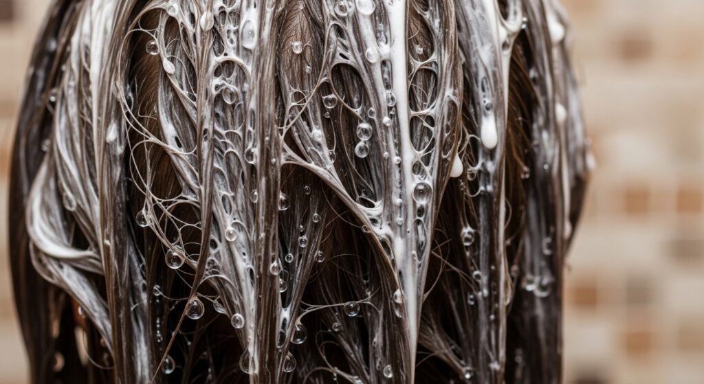 In the shower, after cleansing, apply a generous amount of a rinse-out conditioner known for great slip. Use your palms to smooth it over your hair, ensuring every strand from root to tip is coated. The hair should feel slick to the touch. This is your detangling canvas.