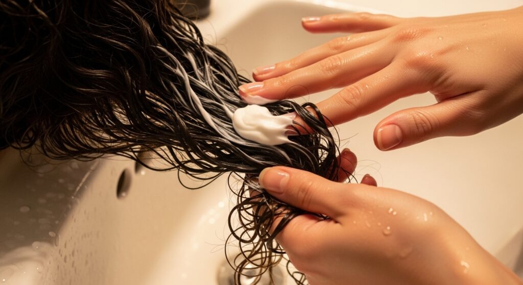 After applying product, use a microfiber towel or cotton t-shirt to gently scrunch out excess water. Avoid rubbing or twisting, which can cause frizz. The goal is to get your hair from dripping to damp, creating a better canvas for diffusing.