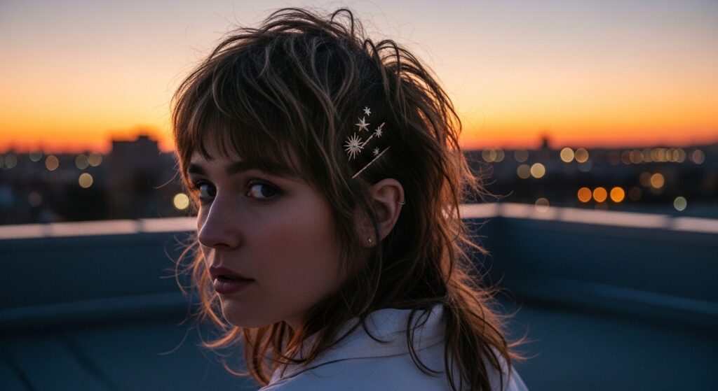 Accessorized Clips and Pins: This is one of the biggest trends. Style your hair in simple waves or a clean updo, then adorn it with decorative clips, pearls, or geometric pins. You can spell out “love” or just create a sparkling constellation in your hair.