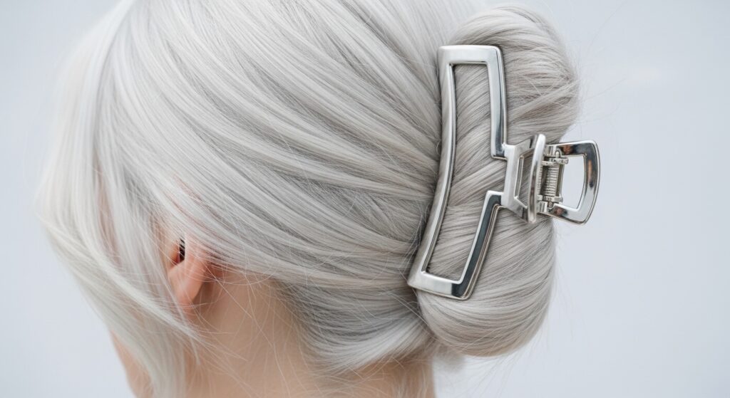 Accessorize Wisely: Metallic accessories in silver, platinum, or gunmetal complement white hair beautifully. Think simple barrettes, headbands, or elegant claw clips. Avoid brassy golds that can clash.