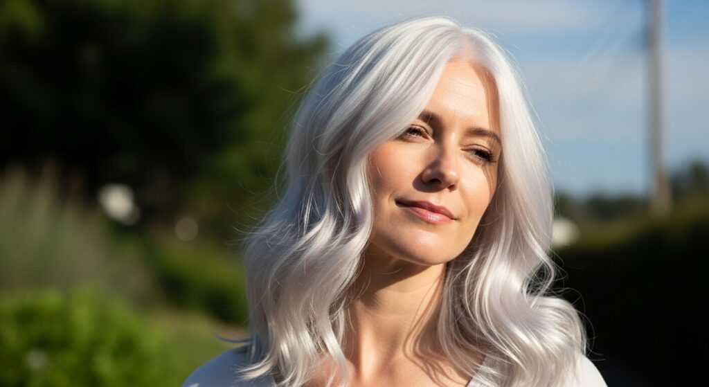 Medium-length hair offers the perfect balance between the drama of short hair and the versatility of long locks. It’s an ideal canvas for showcasing the dimension in white hair.