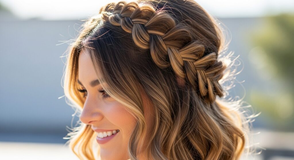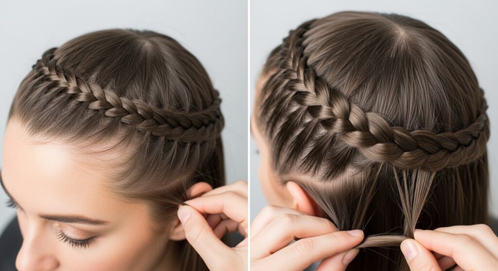 1. The Front-Halo Faux Crown: This method focuses on the front half of your head. Create a Dutch or French braid starting at one temple, braiding along the hairline, and stopping at the opposite temple. Pin the ends neatly underneath the starting point. This gives the crown effect without needing to circle the entire head.