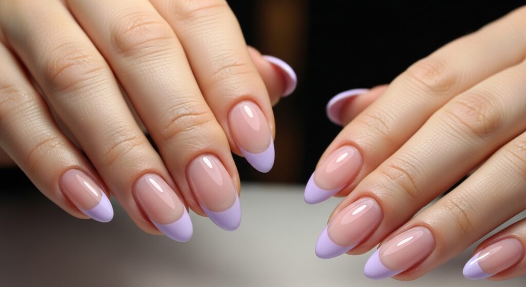 Twist a classic. Replace the traditional white tip with a soft lavender for a fresh take on the French manicure. You can keep it subtle with a thin line or go bold with a wide, pastel tip. This look is elegant, chic, and perfect for any occasion.