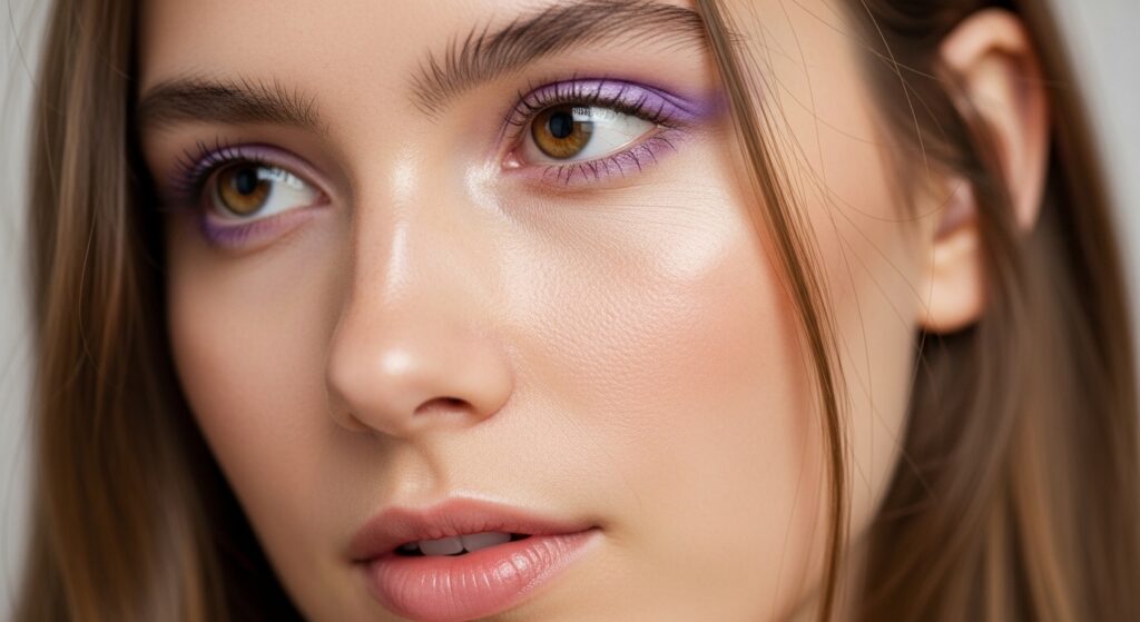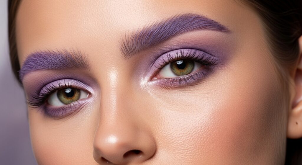 For the truly adventurous, tint your brows. Using a colored brow gel or a safe, semi-permanent product, you can lightly tint your brow hairs with lavender. For a subtler approach, simply brush a tiny amount of lavender eyeshadow through the brows to catch the light and complement a lavender eye look.