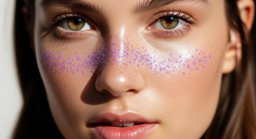 Embrace whimsical artistry. For a festival or editorial look, use a fine-tip eyeliner brush and a creamy lavender eyeshadow or face paint to dot on delicate pastel freckles across the nose and cheeks. Space them unevenly for a natural, fairy-like effect. Set with a translucent powder to ensure they last.