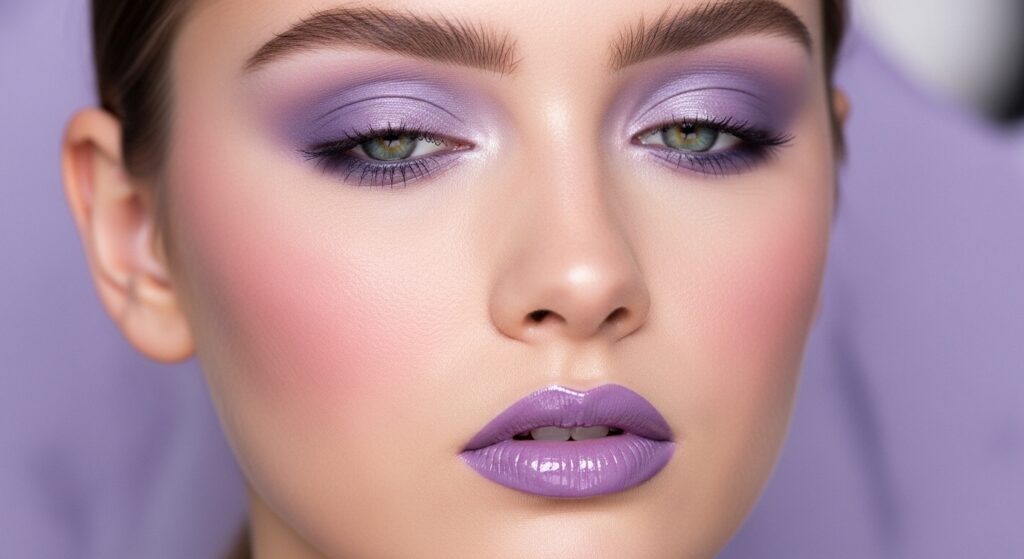 Commit to the theme. A monochromatic look using varying shades of lavender is incredibly cohesive and fashion-forward. Use a deeper lavender on the eyes, a mid-tone on the cheeks as blush, and a lighter, glossier lavender on the lips. This technique ties your entire face together in a soft, harmonious palette.