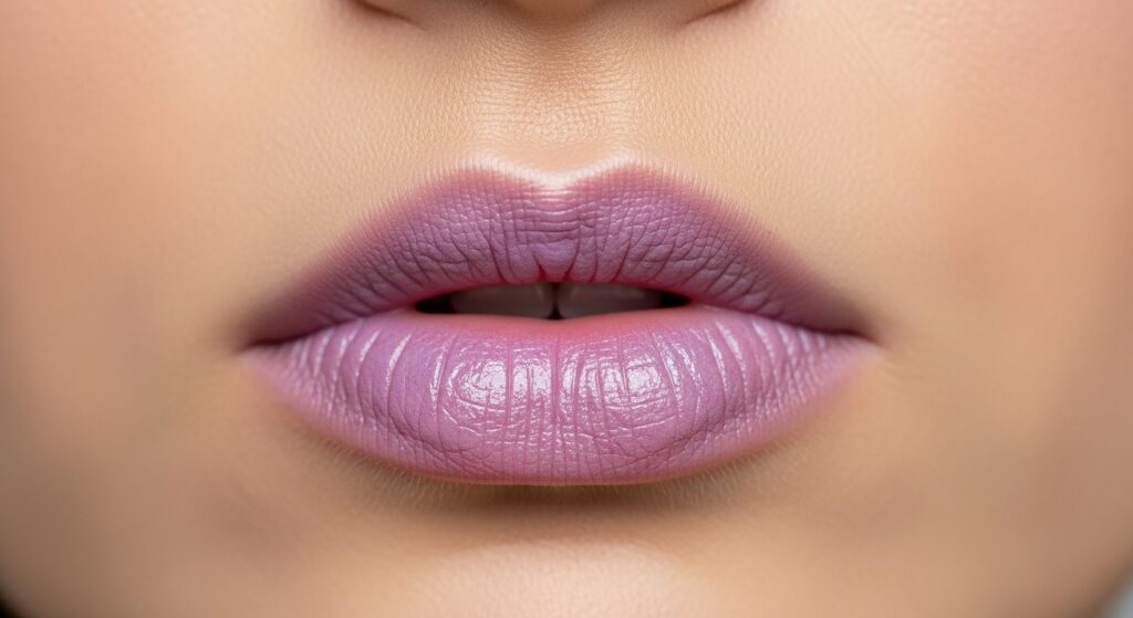 Create a soft, stained lip effect. Instead of a precise lipstick application, use your finger or a brush to pat a lavender lip tint or cream blush into the center of your lips, blending it outward. This creates a soft, bitten-lip look that’s youthful and effortlessly cool.