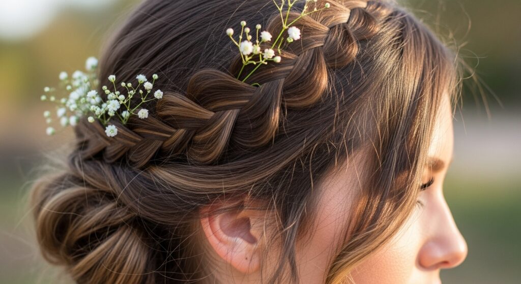 2. Braided Crown with Wispy Layers
