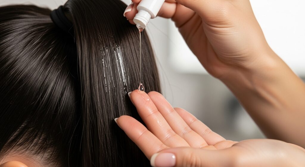 Once your ponytail is perfect, add the “glass” to glass-smooth. Rub one drop of silicone-based shine serum between your palms and lightly gloss it over the surface of the ponytail, avoiding the roots. This eliminates any final frizz and gives a high-gloss, healthy sheen.