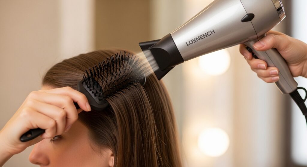 Before you even pick up a brush, work a pea-sized amount of smoothing primer or blow-dry cream through your mid-lengths and ends. This creates a smooth canvas, fights frizz, and provides a light hold that makes every subsequent step easier. Avoid applying too much at the roots to prevent weighing hair down.