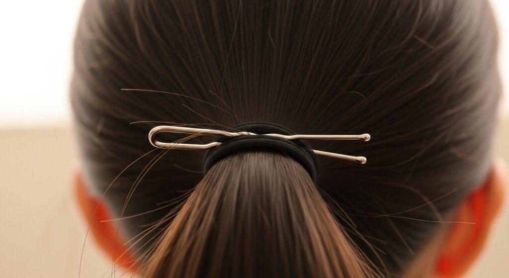 After securing your ponytail with an elastic, take a single bobby pin and insert it horizontally through the base of the ponytail, catching a bit of hair from underneath and the elastic. Push it in until it disappears. This anchors the ponytail from the inside, preventing it from drooping throughout the day.