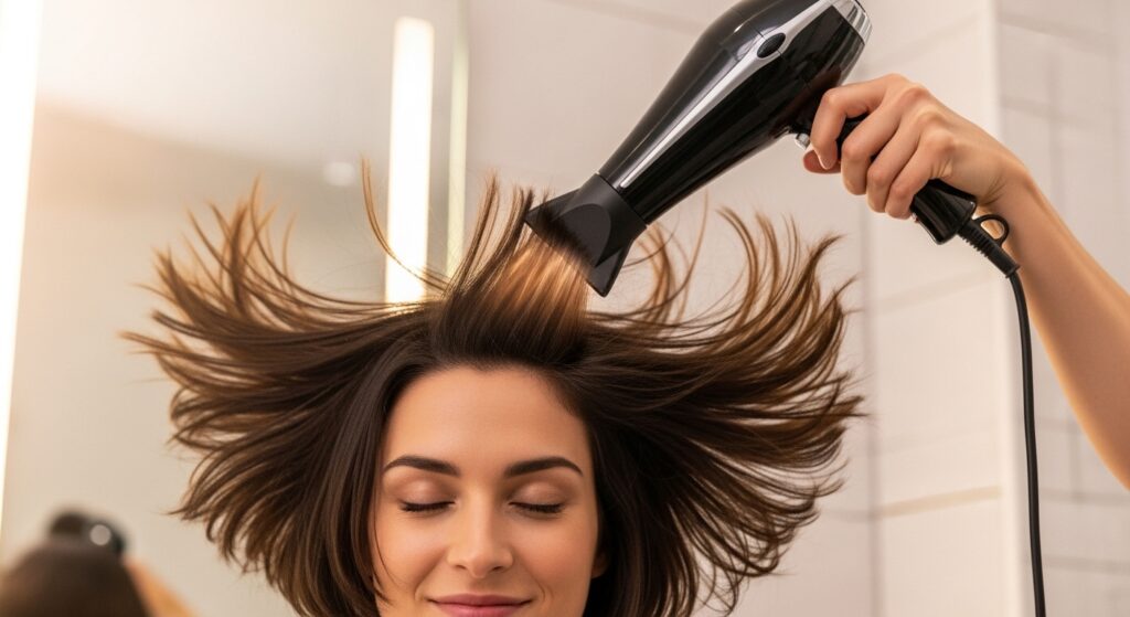 How you dry your hair sets the stage for everything. For maximum bounce, flip your head upside down while blow-drying the roots. This gives you instant volume at the crown. Then, as you dry the rest, use a concentrator nozzle and direct the airflow *down* the hair shaft to smooth the cuticle. This combination technique gives you the best of both worlds: root lift and sleekness.