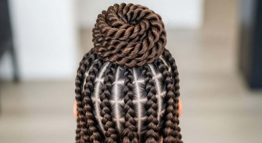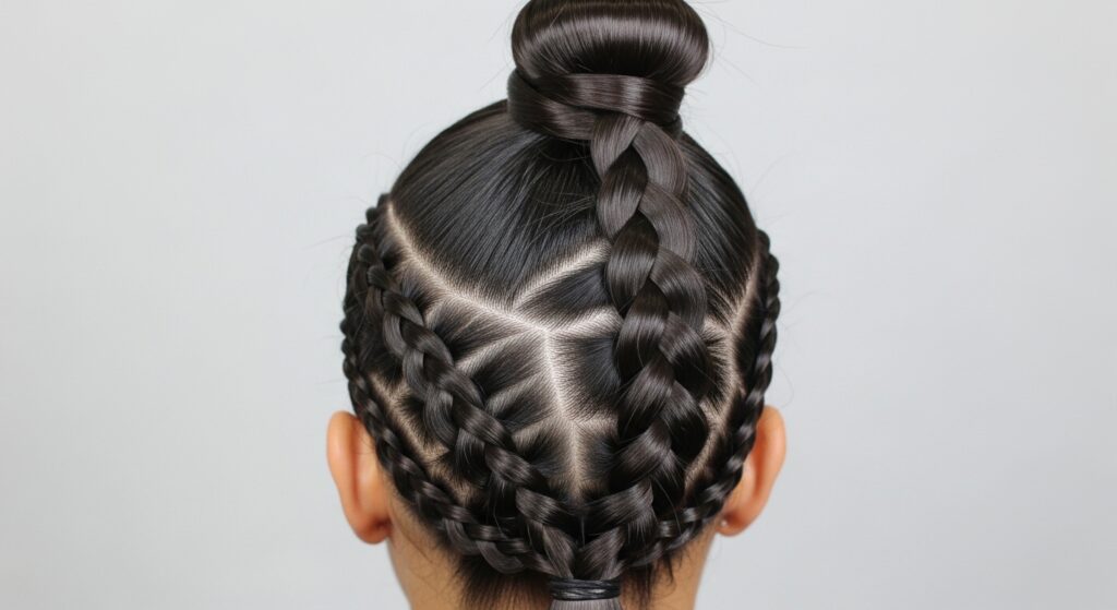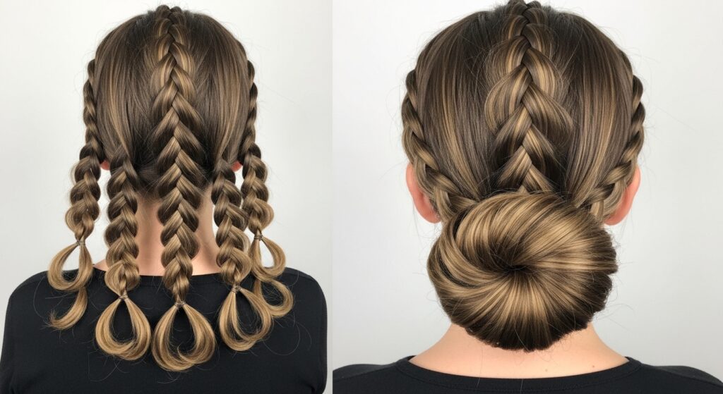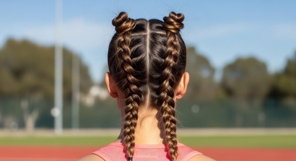 For an athletic or edgy look, start with two Dutch braids (boxer braids) going straight back. At the ends, instead of simple ponytails, create two small top knots. This keeps every strand in place during any activity while looking incredibly cool and intentional. It’s the ultimate casual yet fierce hairstyle.