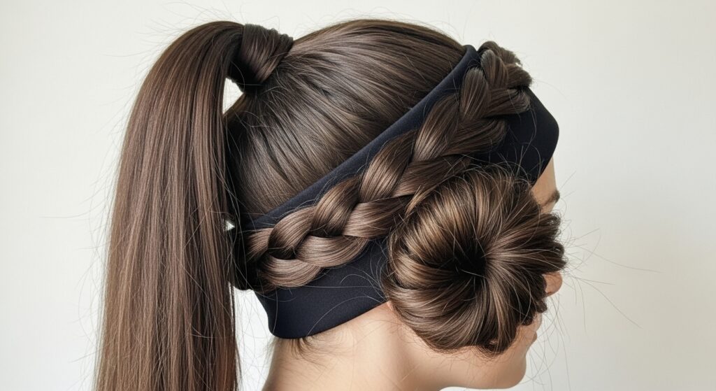 This style starts as a headband and evolves. Take a section of hair from the front, twist it back along your hairline, and secure it temporarily. Gather all your hair, including the end of the twist, into a ponytail and then a bun. The twist acts as a beautiful, built-in headband that adds detail and keeps hair away from your face.