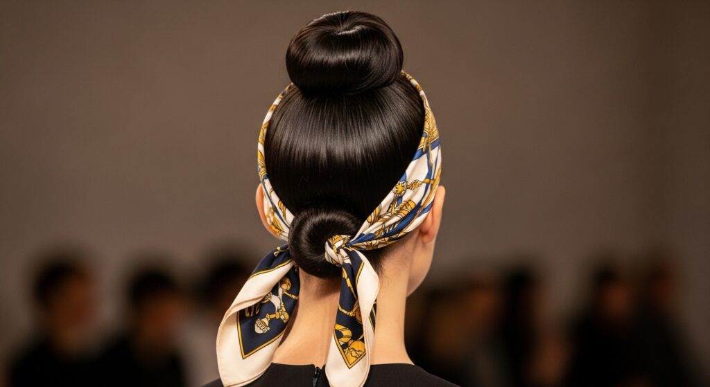11. The High Slicked-Back Bun: Apply a generous amount of conditioner, comb your hair back into a high, tight ponytail, and twist it into a sleek bun. The tension helps with absorption and gives a powerful look.